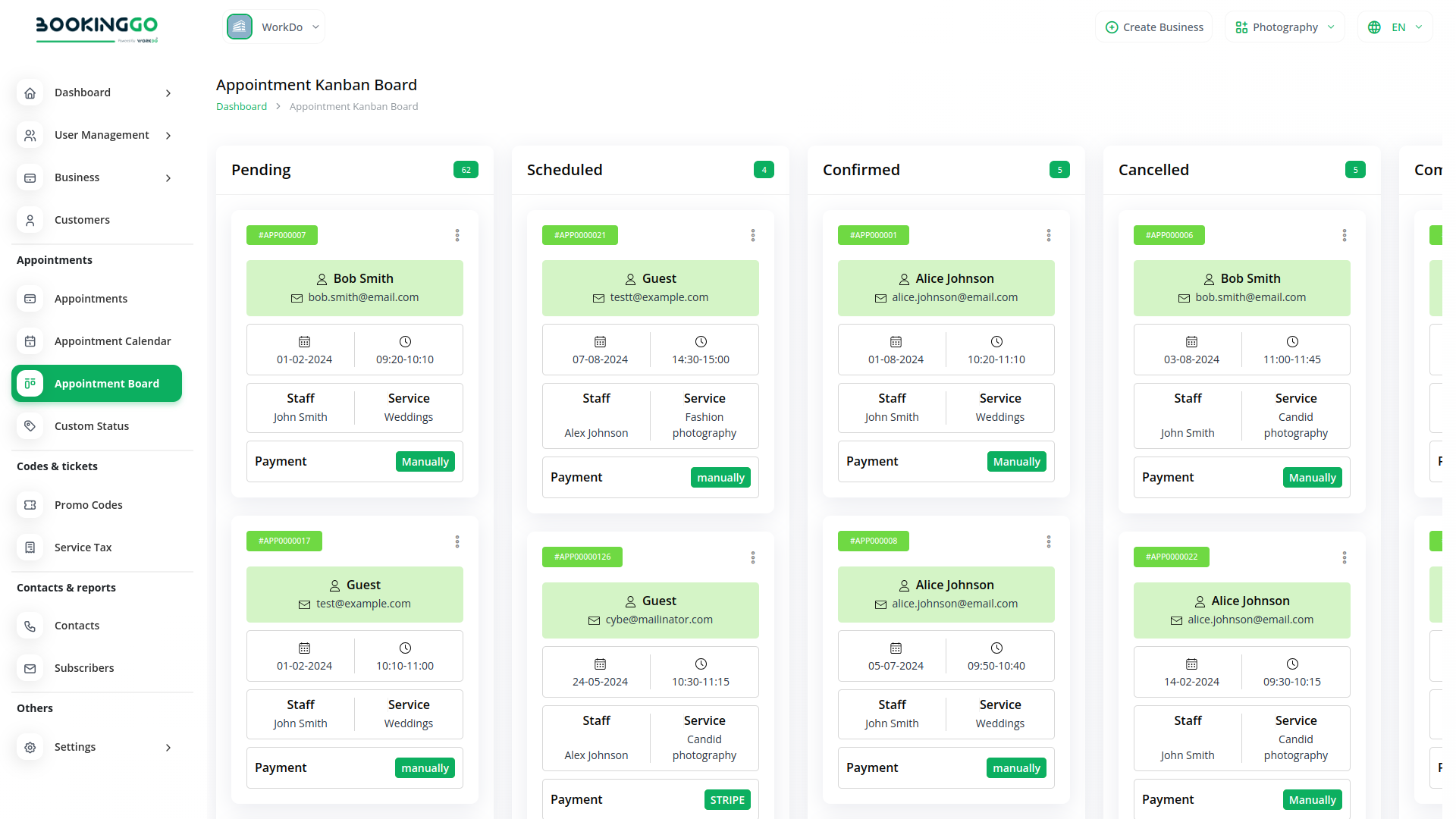 Appointment Kanban Board